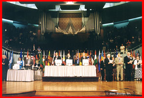 As the roll call of nations is read, the flag of each nation where the church is established is brought to the rosturm.
